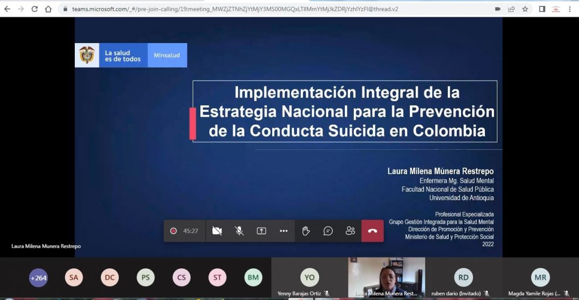 La agenda de esta sesión contó con intervenciones de representantes de la academia y de entidades territoriales de salud, con amplia experiencia en procesos de prevención en el campo de la salud mental destacando contenidos así: