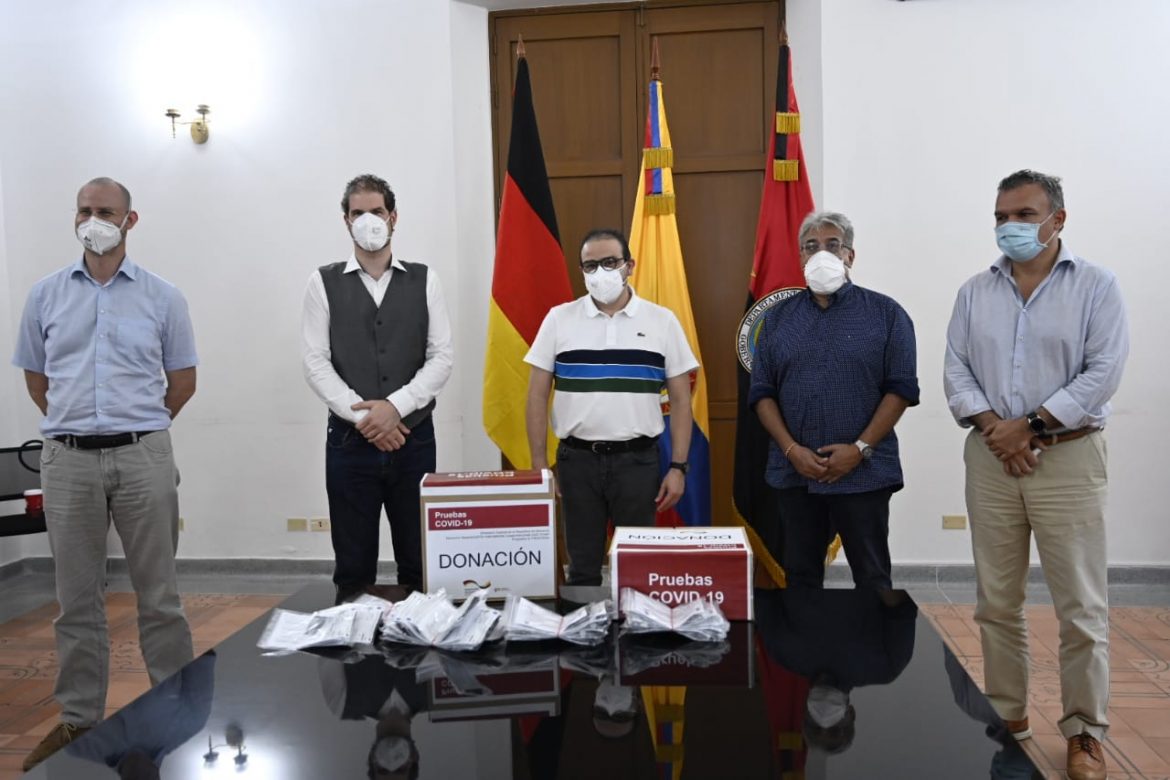 Esta misión apoyada por el Gobierno Alemán y organizada por la Cooperación Alemana para el Desarrollo GIZ, a través del programa SI FRONTERA, busca fortalecer el diagnóstico del COVID-19, con el firme objetivo de minimizar el impacto de la pandemia en Colombia. Para ello, fueron entregadas 10.000 pruebas PCR – protocolo de Berlín para el diagnóstico del COVID-19 y 1.200 pruebas para el monitoreo rápido de las variantes de mayor interés epidemiológico, donadas al Laboratorio de Salud Pública de Norte de Santander y a CEDIMOL de la Unipamplona.