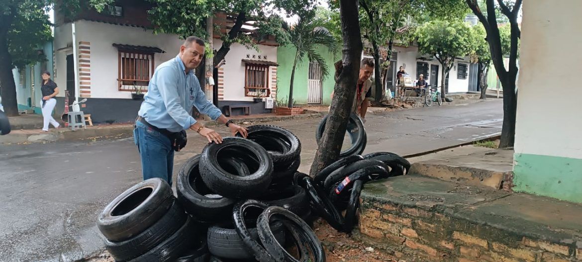 Funcionarios del área de Vectores del Instituto Departamental de Salud, junto operarios de la empresa Veolia, Aqualia y la alcaldía de Villa del Rosario, adelantaron operativos de recolección de inservibles en el sector del Barrio La Palmita, en el Municipio de Villa del Rosario, con el objetivo de evitar la propagación del vector transmisor del Dengue.